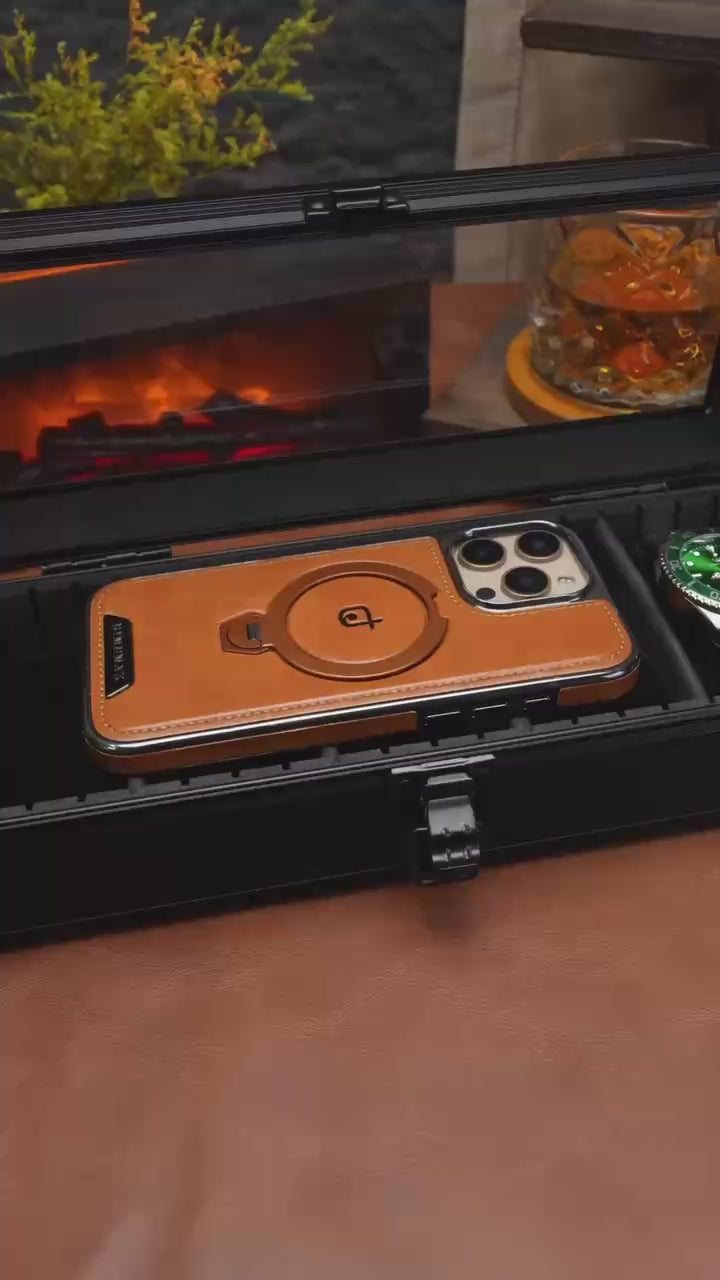 Give your iPhone a stylish upgrade with our premium leather MagSafe-compatible case, designed to combine elegance and functionality. Crafted from high-quality genuine leather, it offers a sophisticated look and long-lasting protection. Fully MagSafe-compatible for smooth wireless charging and accessory use, it also features a built-in foldable stand for hands-free viewing — perfect for work, travel, or relaxing moments.